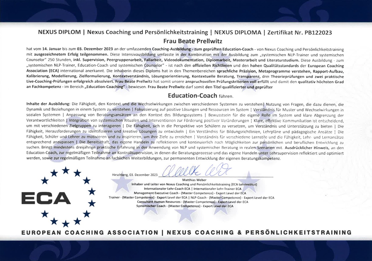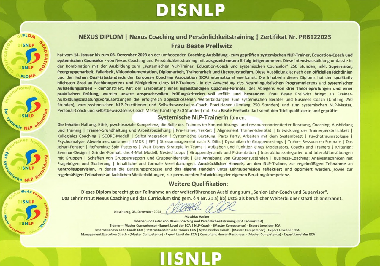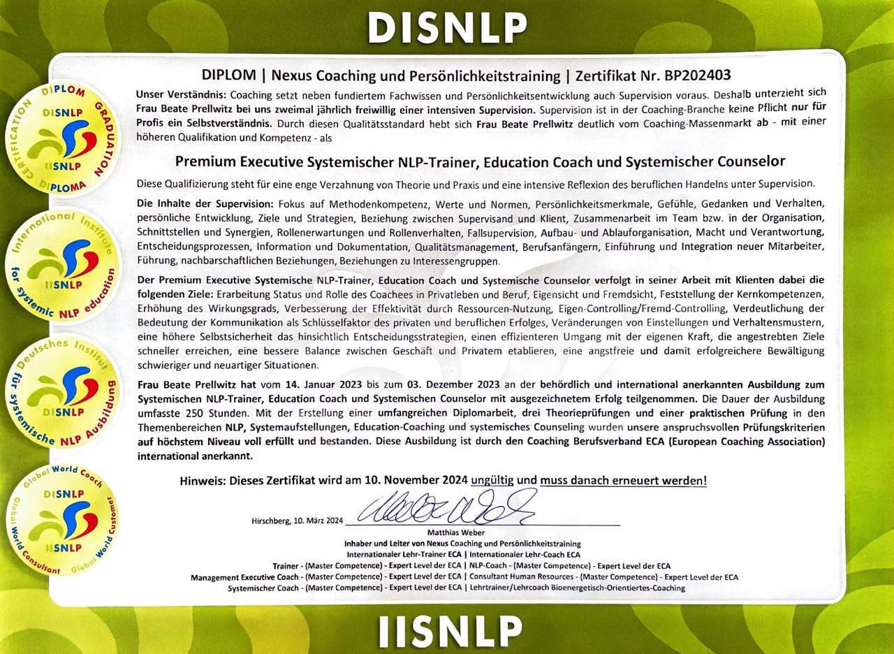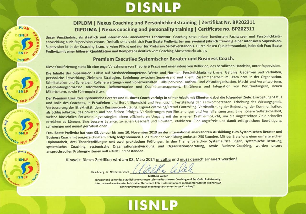 Weiterbildung | Premium Executive Systemischer Berater und Business Coach | November 2023