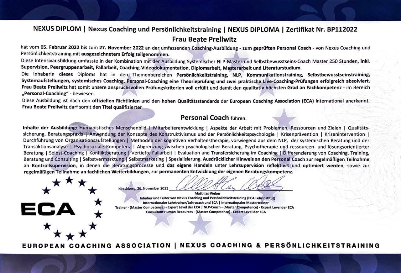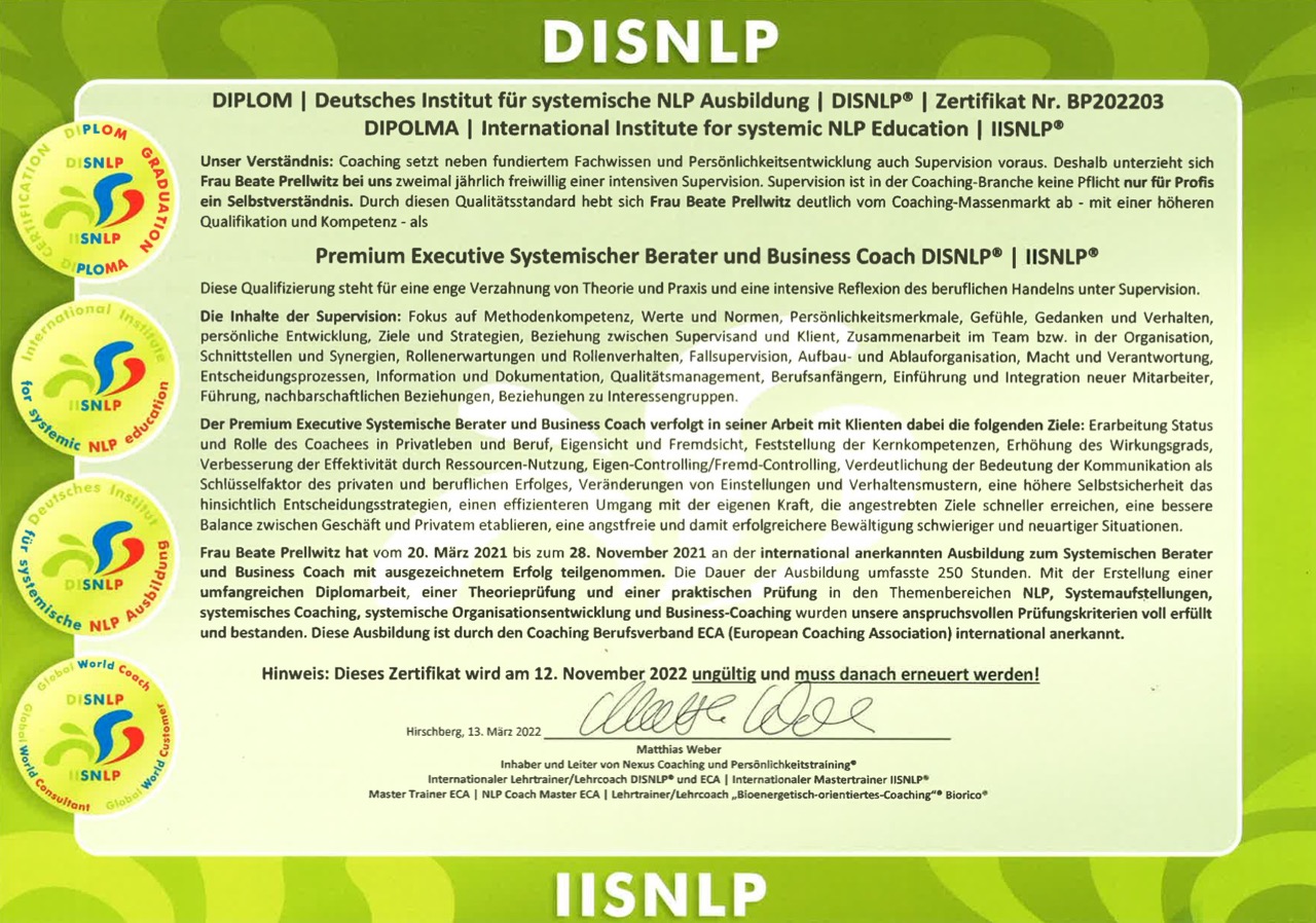 Weiterbildung | Premium Executive Systemischer Berater und Business Coach | November 2022